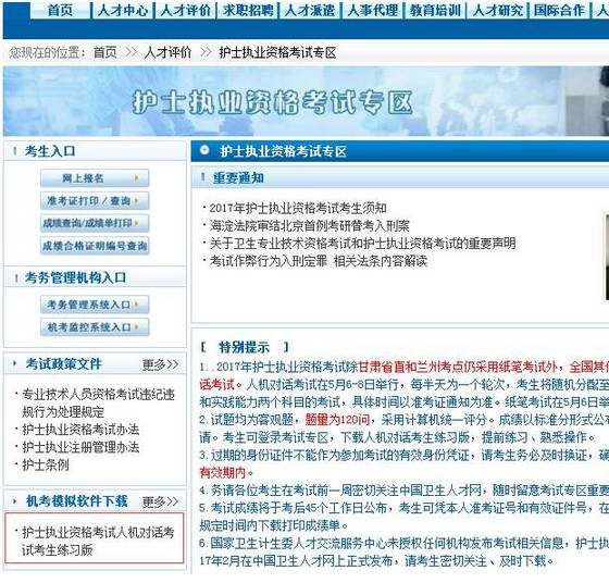 1、登陆护士资格考试唯一官网:中国卫生人才网(http://www.21wecan.com),点击进入“护士执业资格考试”专栏